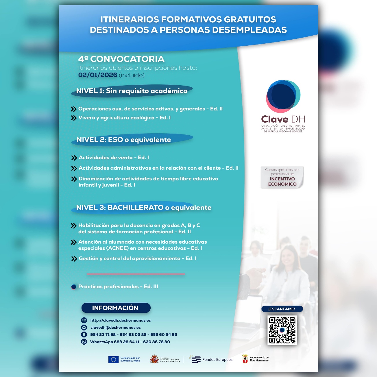 Clave DH (Capacitación Laboral para el Avance en la Empleabilidad Desarrollando Habilidades), programa de formación innovador destinado a personas desempleadas con el objetivo de mejorar su acceso al...