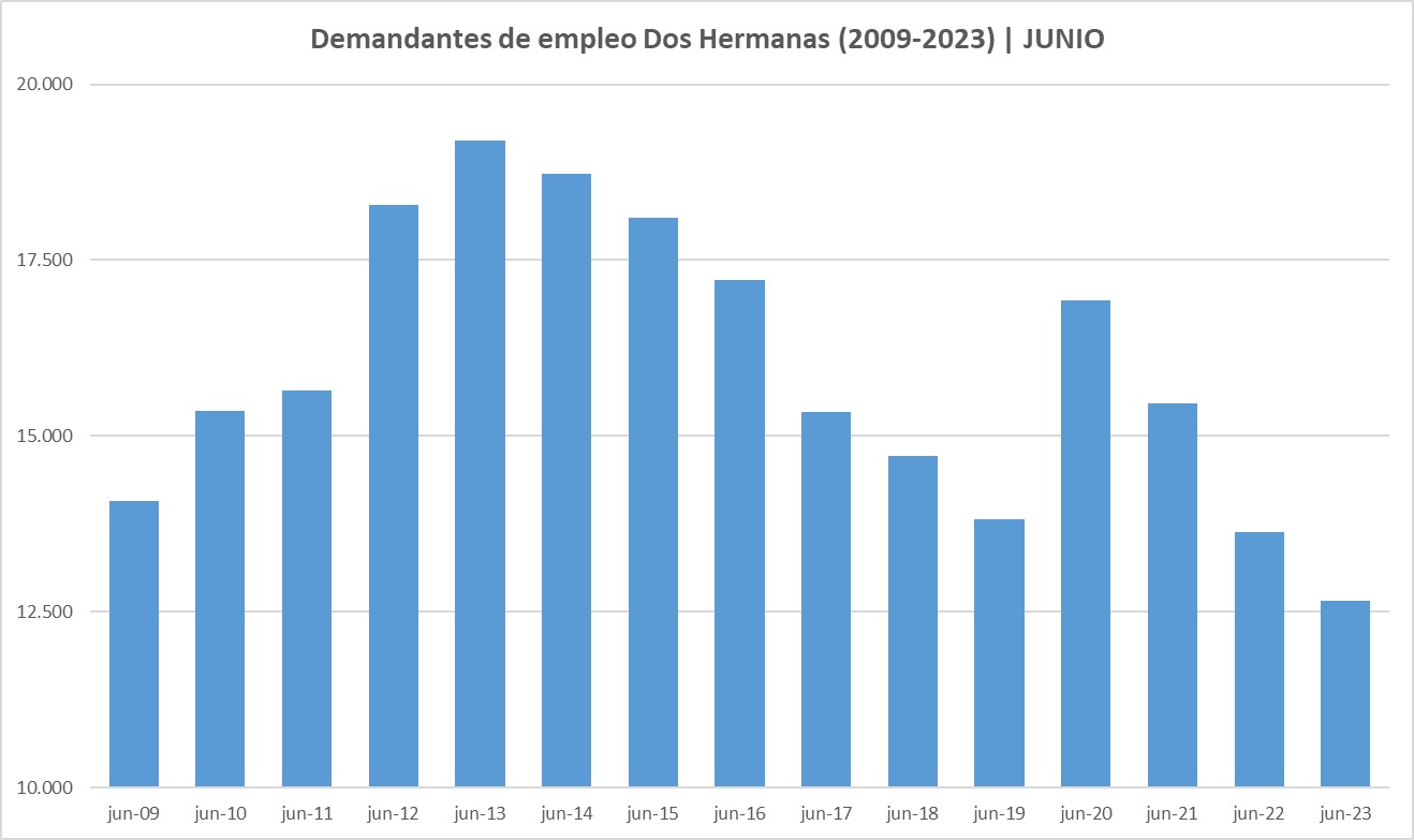 DOS HERMANAS REGISTRA EL MES DE JUNIO CON MENOR NÚMERO DE PERSONAS PARADAS DESDE 2008