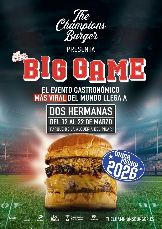 Dos Hermanas se convertirá del 12 al 22 de marzo en punto de encuentro para amantes de la gastronomía y del ocio con la celebración de The Champions Burger, el mayor festival de hamburguesas gourmet de Europa, que llega a la ciudad dentro de su nueva ruta The Big Game.