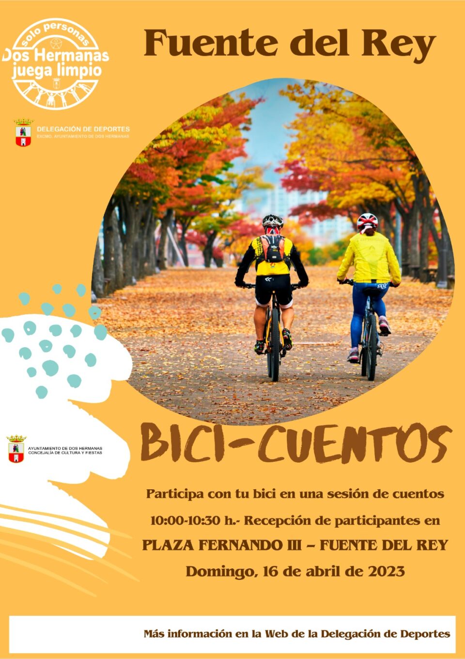 El próximo domingo 16 de abril se va a celebrar el Bicicuentos en la barriada nazarena de Fuente del Rey, una actividad de carácter gratuito en la que pueden participar todas las personas que lo deseen, constituyendo tan sólo como condición fundamental el realizar el recorrido montado en una bicicleta o cualquier medio de desplazamiento sobre ruedas, no motorizado.