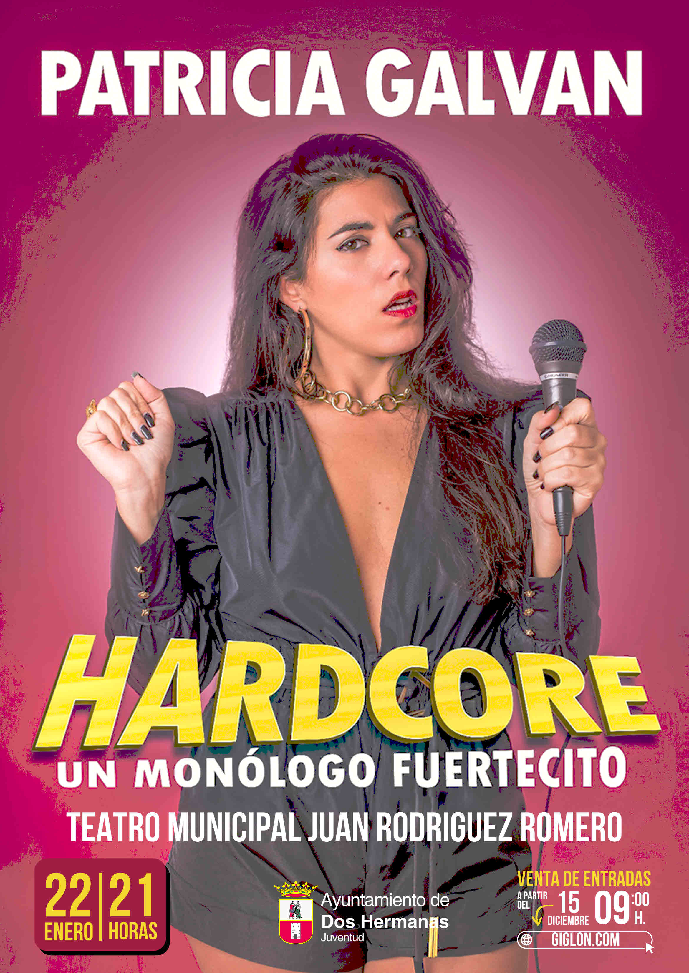 La Delegación de Juventud del Ayuntamiento de Dos Hermanas, que dirige María de los Reyes Garrido Jaén, ha presentado el espectáculo HARDCORE, de la actriz y monologuista Patricia Galván. Será el próximo 22 de enero de 2026, a las 21 horas, en el Teatro Municipal Juan Rodríguez Romero, de Dos Hermanas.