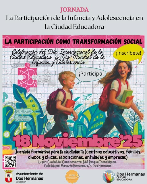 Ciudad del Conocimiento (Miguel Manaute s/n, Dos Hermanas, Sevilla) El 18 de noviembre te invitamos a la Jornada La participación de la Infancia y Adolescencia en la Ciudad...