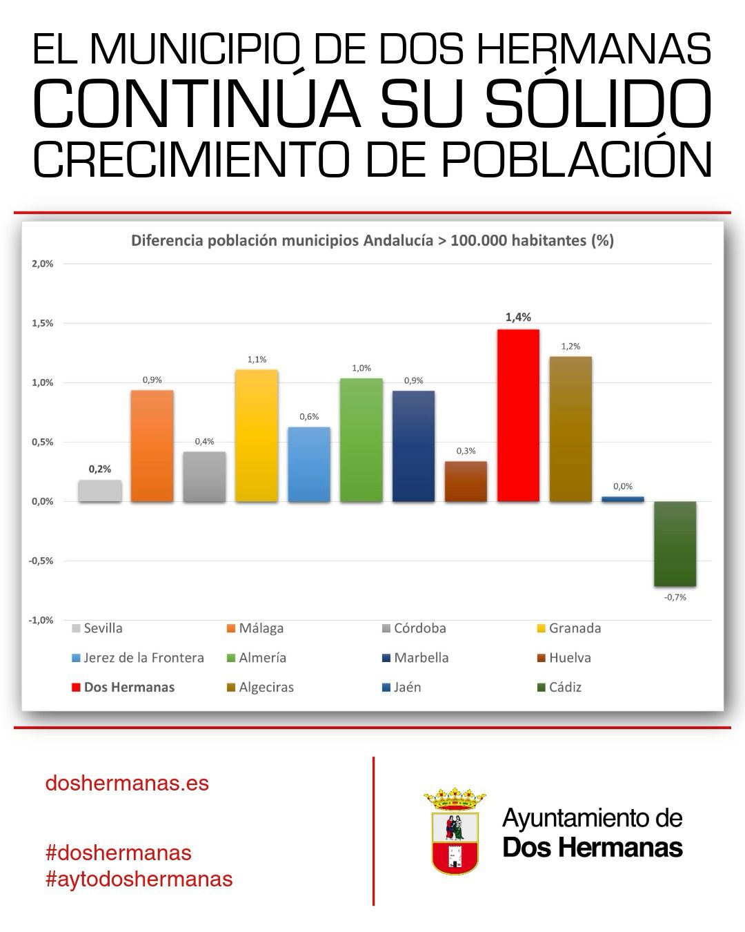 Según los datos oficiales del censo anual de población que ha publicado en esta semana el Instituto Nacional de Estadística (INE), correspondiente al 1 de enero de 2025, la ciudad de Dos Hermanas ha...