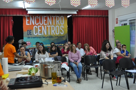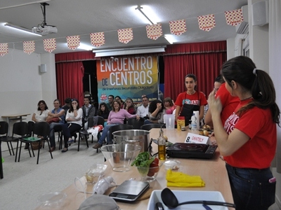 "Cocina" del VIII Encuentro de Centros El 17 de abril se realizó la prueba final de cocina , en la que han participado 16 Centros de Educación Secundaria de nuestra localidad. Al finalizar la prueba, los equipos mejor situados fueron: IES Cantely, IES Torre Doña Mª e IES Vistazul.