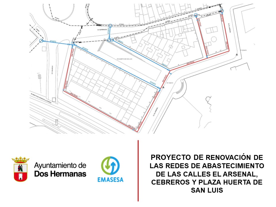 EMASESA ha comenzado en el día de hoy la renovación integral de las redes de abastecimiento en las calles Arsenal, Cebreros y la Plaza Huerta de San Luis, una actuación necesaria para mejorar el servicio y garantizar la conservación de las infraestructuras hidráulicas existentes en este entorno del casco urbano.